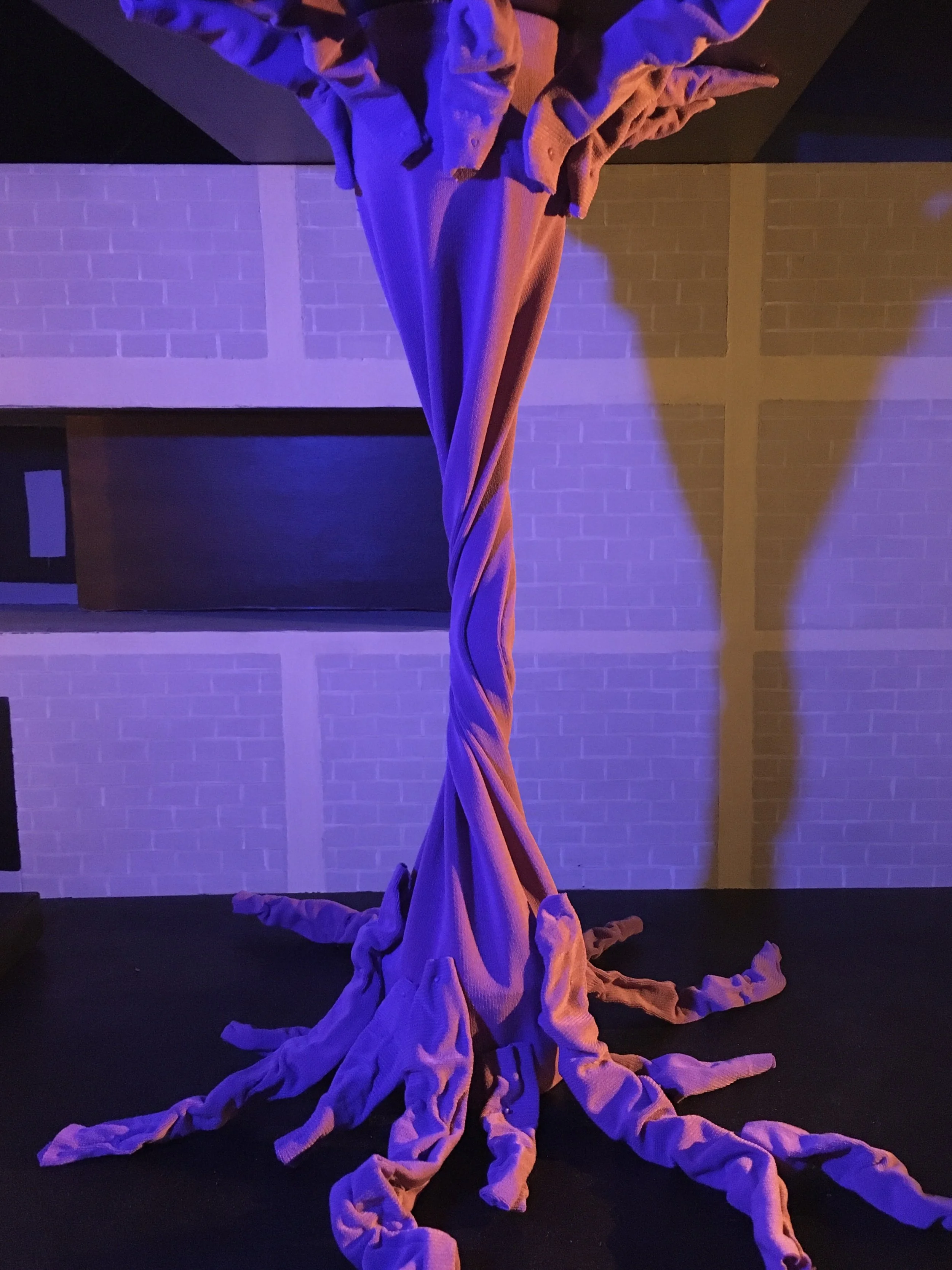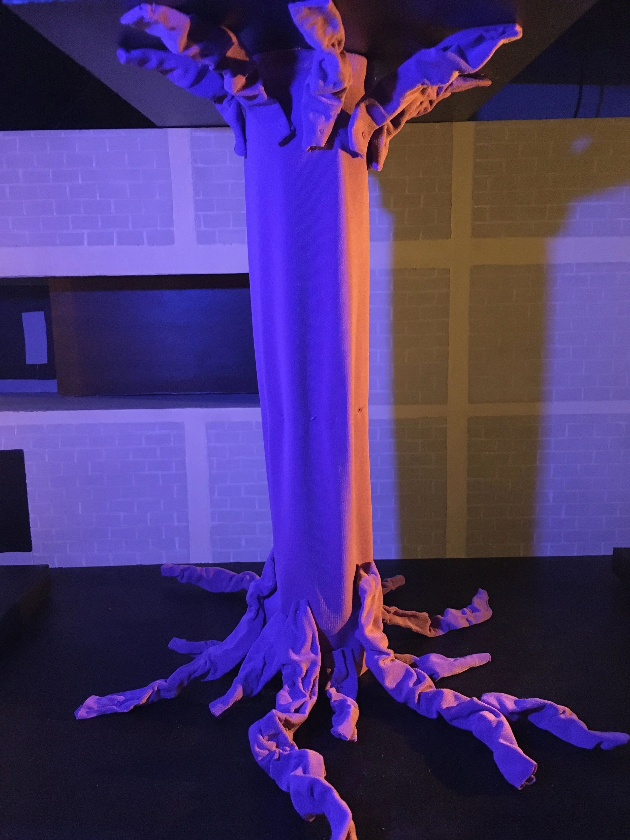 The main focus of this set design was this giant, fabric tree, which has the capacity to twist around the trunk. This makes it almost a character of its own, able to react to the goings on around it. I was able to create a functioning mechanical model to demonstrate the movement would be like.